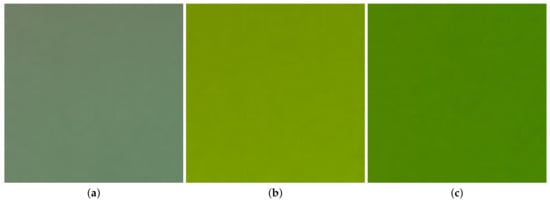 Since the image data are quite uniform, analyzing the texture of images is critical for understanding microalgal density information. The texture of an image is defined by the spatial relationship of pixel values or the variation in color intensity within the image []. In other words, texture provides information of the spatial distribution of pixel values in a given image.