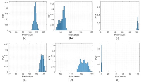 Due to the uniformity of the pixel values in each color channel as illustrated in Figure 4, some existing works proposed utilizing the average of pixel values in a color channel as a predictor feature in building an estimation model. For instance, in [,], the authors used a formula proposed by the International Telecommunication Union (ITU) to compute an average value of a grayscale image as follows: