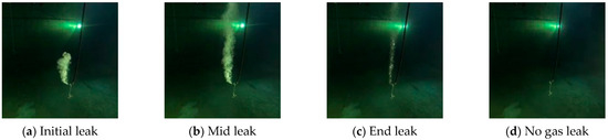 Images from Co. L. Mar. underwater gas leak experiments under different leakage stages.