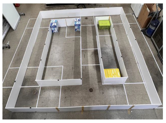 The autonomous vehicle implemented in 4.1 was used to collect learning data. Figure 9 shows an indoor driving track built for autonomous driving. We placed an autonomous vehicle equipped with LiDAR on an autonomous track and measured the range data between the vehicle and the wall while moving along the track.