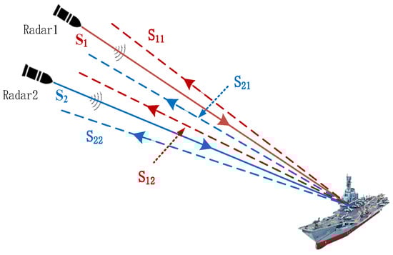 Similarly, the echo received by radar 1 transmitted by radar 2 and echo received by radar 2 transmitted by radar 1 are, respectively, expressed as