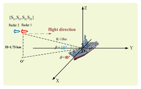 Radars with all-weather, all-day, long-range detection ability, are one of the important sensors in the onboard platforms for target imaging [1]. However, with the progress of target stealth technology and the rapid technical development of jamming countermeasures, such as target RCS reduction, which requires a radar to adopt a large antenna aperture and signal system with a large bandwidth, which brings great challenges to single radar detection [2]. Compared to single radar detection, multi-radar collaborative detection can not only obtain more observation periods but also obtain the characteristics of different dimensions, such as frequency character [3], polarization character [4], space character [5], etc., which is an important development direction for stealth target detection in a complex electromagnetic environment. According to the varied detection angles and radar working frequency bands, multi-radar cooperative detection mode can be divided into spatial cooperation and frequency band cooperation, to obtain the benefits of spatial diversity [6,7] and frequency diversity [8,9]. The former realizes target detection and recognition by jointly processing information for multiple detection angles to reduce the probability of misjudgment in single-view detection. The latter processes varied radar frequencies coherently to obtain higher-range resolution and gain by pulse compression.