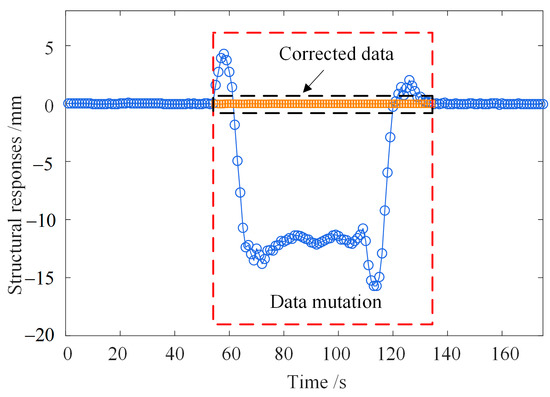 The internal force and deformation of the bridge will change dramatically due to the action of live loads [37,38]. Accordingly, the monitoring data will mutate. Therefore, it is possible to eliminate the live loads-induced response using this characteristic.