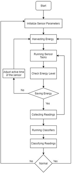 Figure 5 illustrates a flowchart of the SpWBAN-managed operation where, based on the employed multi-class machine learning algorithms and the trained data, the controller can reach specific classes for reading from all sensors. Accordingly, the controller can direct the sensors to prolong or shorten the active duration.