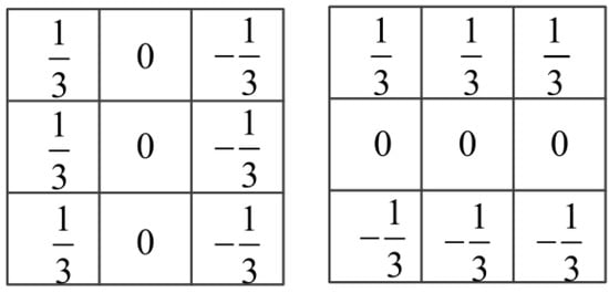 where and represent the gradient in vertical and horizontal directions, respectively. In this paper, we use the Prewitt kernels, as shown in Figure 3.