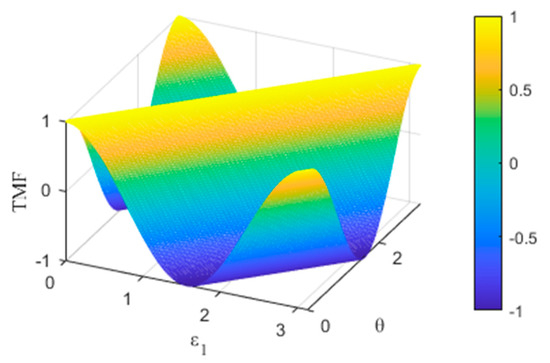 We name as Target-beam Monitoring Function (TMF). Figure 2 shows the numerical solution of TMF plotted within the unit value interval of the independent variables and .
