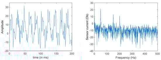 Motor Current Signature Analysis (MCSA) is a non-invasive diagnostic technique used to analyze the health of induction motors. It involves analyzing the current waveform generated by the motor during normal operation and comparing it to a known good signature to detect anomalies and faults. It represents the first step in fault diagnosis, typically accompanied by signal processing techniques such as Fast Fourier Transform (FFT) [19,25], wavelet [17,26] or Hilbert–Huang Transform [27,28]. MCSA can provide inaccurate results with the occurrence of saturation, interbar currents or magnetic asymmetry [29].