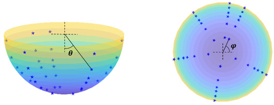 - Define a 10 × 36 grid in the 2π image FOV, with θ ranging from 0° to 90° with 10° intervals and φ ranging from 0° to 350° with 10° intervals.