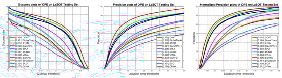 Success and precision plots for LaSOT test set. Best viewed on high-resolution display.