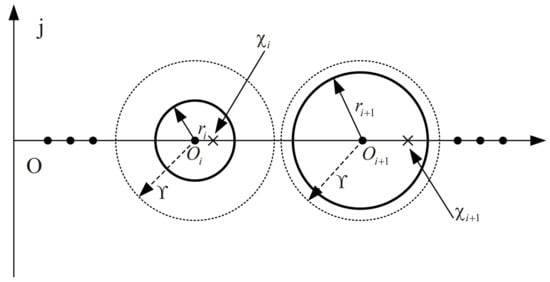 As shown in Figure 1, according to the Geršgorin circle theorem, the eigenvalue lies in the ith Geršgorin circle ,where:
