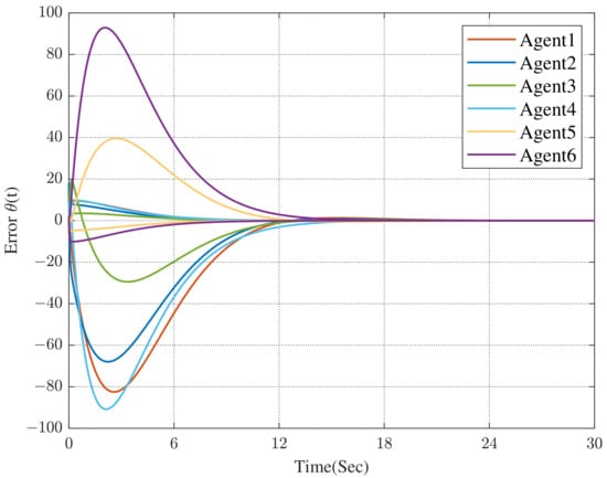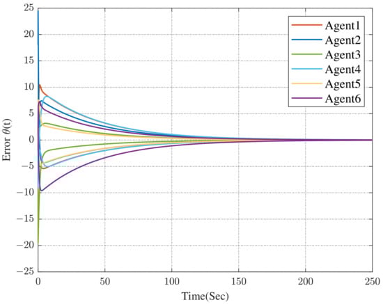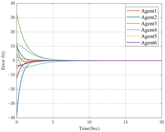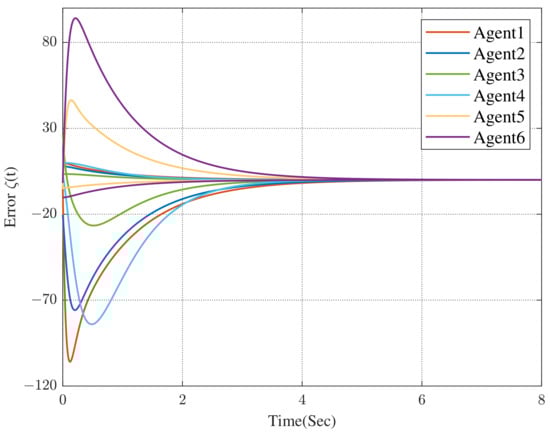 Under the dynamic distributed control protocol (9), the convergence curve of the error system is respectively described in Figure 3 and Figure 4.