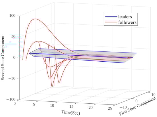 where is the state vector of leaders, is the state vector of followers, and is the control input vector of agent j.