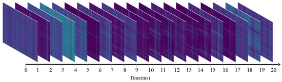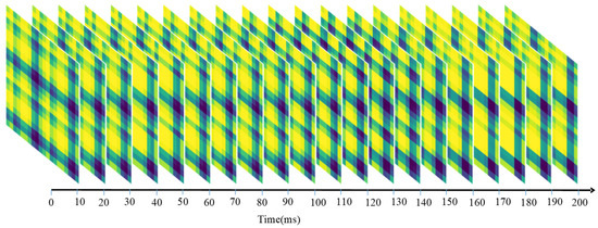 After transforming the rescaled sEMG signal to polar coordinates, the angular increment can be calculated by the trigonometric sum between each point to identify the channel correlation of different values in sensor channels. Therefore, we define the inner product as , where p and q are the channel indices. In this way, the sEMG-GAF image at moment can be defined using a Gram matrix: