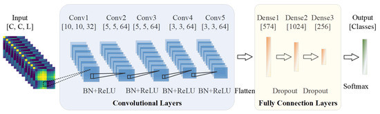 DCNN can effectively extract crucial spatial features from the data and has shown exemplary performance in several computer vision and pattern recognition competitions [35]. It is also a competitive classifier in many applications. A CNN-based architecture is essential to achieve good classification accuracy. Krizhevsky et al. [36] proposed AlexNet, which can enhance the learning capacity of a CNN by making the network deeper through various parameter learning strategies. The AlexNet architecture includes five convolution layers and three fully connected layers, which make a CNN applicable to classification tasks with diverse categories of images [37].
