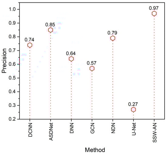 Precision of various methods. Current SSW-AN is compared with DCNN [37], ASDNet [38], DNN [35], GCN [39], NDN [40] and U-Net [41].