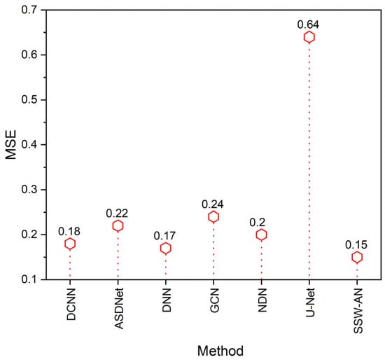 MSE of various methods. Current SSW-AN is compared with DCNN [37], ASDNet [38], DNN [35], GCN [39], NDN [40] and U-Net [41].