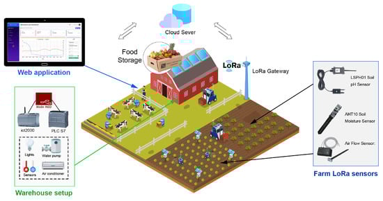 - Yoon, H.W.; Kim, D.J.; Lee, M.; Weon, C.; Smith, A. L & M Farm: A Smart Farm based on LoRa & MQTT. In Proceedings of the 2020 International Conference on Omni-Layer Intelligent Systems (COINS), Barcelona, Spain, 31 August–2 September 2020; pp. 1–6. [Google Scholar] [CrossRef]
