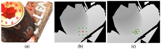The depth value of the object in the image has a certain spatial correlation; however, it is only expressed by the pixels on the surface of the object. We adopt the strategy of PatchmatchNet to achieve adaptive propagation of neighborhood pixels. This differs from DeepPruner [], which predicts pixel depth only through simple neighborhood pixel depth propagation. As shown in Figure 2, the spatial correlation of the pixel depth value of the object surface can be obtained to the maximum extent through this adaptive propagation, which makes the model converge to a more accurate depth value quickly.