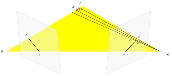 In most learning-based MVS, the depth sampling range is set to . The number of sampling depth layers is fixed within the depth range, then the sampling interval is determined. However, in multi-scale feature extraction, a fixed sampling interval for different scale images will lose the feature information of the image. Therefore, we adopt a strategy of dynamic sampling intervals. The sampling interval is determined according to the image pixel difference at different stages. The specific processing method is shown in Figure 3. By setting different pixel differences, the sampling interval is calculated by the parameters of the image and camera. The calculation formula is as follows: