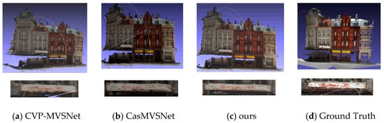 In addition, AttMVS [] utilizes a novel attention-enhanced matching confidence module and attention-induced regularization module to improve the robustness of the network. Vis MVSNet [] infers and integrates occluded information in MVS networks by matching uncertainty estimation strategies. AA RMVSnet [] is an adaptive aggregation module and utilizes a hybrid network with a recurrent structure for cost volume regularization. PatchmatchNet [] introduces traditional region matching algorithms into the deep learning framework, which greatly reduces the running time and memory consumption. Compared with PatchmatchNet, our algorithm proposed in this paper can reconstruct a more complete model.