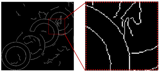 The thickness of the curve affects arc segmentation and may lead to duplicate detections. First, the method in the literature [15] is used to extract the refined contour. When point P meets any of the following conditions, it is removed from the image.