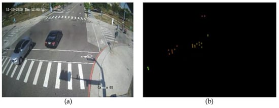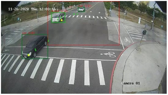 The accuracies of YOLOv3 and YOLOv4 models with and without the camera-only datasets and the comparison of the effects with and without multi-scale object detection are tabulated in Section 4.3. The input sizes are set to be 416 × 416 × N, where “N” is the channels of input arrays. The confidence thresholds are set at 0.2 for pedestrians, 0.2 for bicycles, 0.2 for motorcycles, 0.4 for cars, and 0.4 for full-size vehicles. The IoU threshold is set to 0.5.