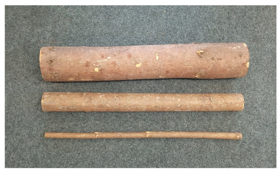 To measure the performance of the sensors under various grasping scenarios, experiments were performed on logs of three different dimensions and under different grasping conditions, using the crane’s manual control mode. The diameter of the logs were (big log), (medium log) and (small log). Figure 7 shows the logs that were used in the grasping experiments.