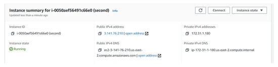 Experiment 2: AWS instance public and private IP addresses.
