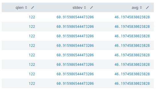 However, this approach may result in false-negative outcomes, as there are some exceptions, where DNS names are used to represent information, e.g., version names where numbers and characters are included in the queries or domain name generators that are often used by large cloud providers. Another benign element which can cause higher than normal entropy is content delivery network (CDN) assistance and site hosting [31]. In such scenarios, the character frequency probability may help to identify the nature of a DNS query. For this study, in order to analyse the probability of each character, the DNS data packets were monitored using the packetbeat platform, which is integrated into the Elastic stack.