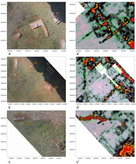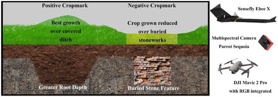 - Brooke, C.; Clutterbuck, B. Mapping Heterogeneous Buried Archaeological Features Using Multisensor Data from Unmanned Aerial Vehicles. Remote Sens. 2020, 12, 41. [Google Scholar] [CrossRef]