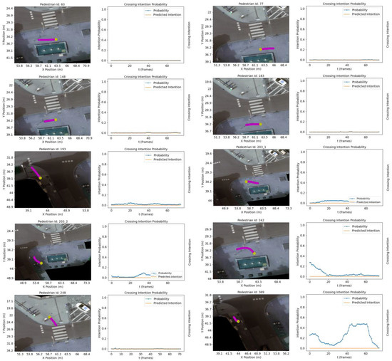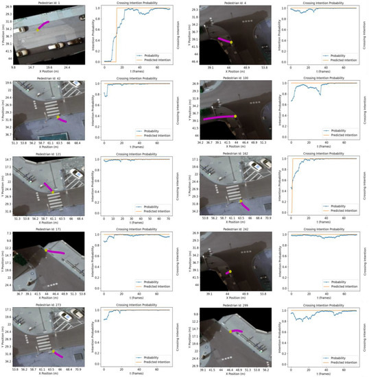 - Zhang, S.; Abdel-Aty, M.; Yuan, J.; Li, P. Prediction of Pedestrian Crossing Intentions at Intersections Based on Long Short-Term Memory Recurrent Neural Network. Transp. Res. Rec. J. Transp. Res. Board 2020, 2674, 57–65. [Google Scholar] [CrossRef]