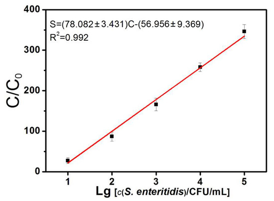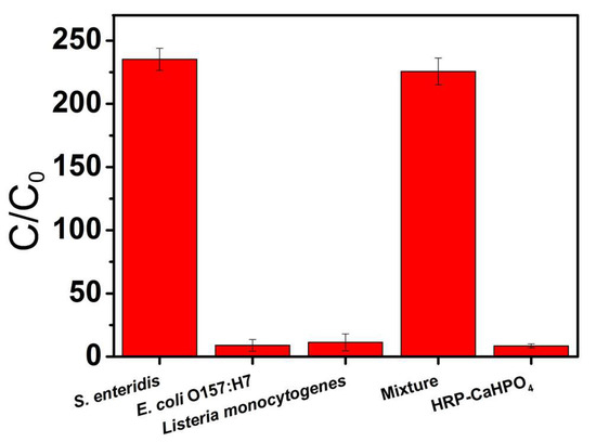 3.4. Detection of S. enteritidis Using HAC Nanoflowers