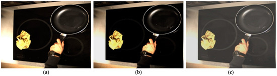 Finally, the algorithm has been tested under different light conditions and with different image crops (see Figure 17). The idea is to test how the algorithm works with images that are different from the ones used for training. The algorithm still works correctly even though the framing of the cooktop is different from the original and the lighting differs from the normal one.