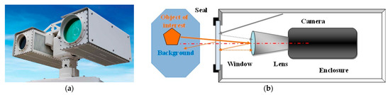 Long range multi-sensor surveillance system: (a) typical multi sensor system; (b) imaging channel structure.