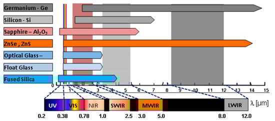 Multi-sensor imaging systems have a very important role and wide application areas in long-range surveillance and security systems [1,2,3,4,5]. They are adaptable modular systems with multi-spectral imaging sensors used for observation, whose purpose is to provide data regarding objects of interest, i.e., targets inside the field of regard (FOR). Surveillance systems use cameras as a key component in the imaging process. In the majority of applications, the camera needs to be isolated from the environment using a transparent optical window. The purpose of an optical protective window is to provide a clear optical aperture to transmit the desired radiation and to keep the two environments separated.