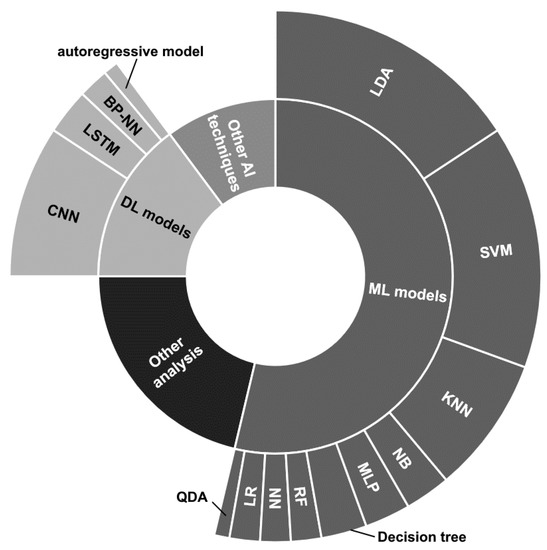- Almost 50% of the works reporting information on the subjects perform their experiment on a maximum of 5 participants; 27% recruit a maximum of 10 subjects, and very few works consider more than 20 participants. A detailed infographic is depicted in Figure 8.