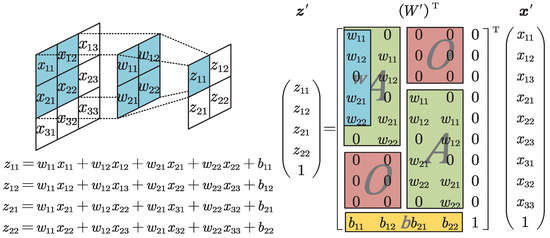 Figure 2 visualizes the above process. The equivalent matrix of the transposed convolutional layer can be obtained by removing the transpose on .