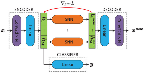 The structure of MSNN is shown in Figure 3. For the input , decoder output , code , and classifier output , the working process of network modules is as follows: