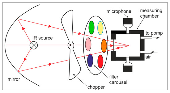 - Koskinen, V.; Fonsen, J.; Roth, K.; Kauppinen, J. Cantilever enhanced photoacoustic detection of carbon dioxide using a tunable diode laser source. Appl. Phys. B 2007, 86, 451–454. [Google Scholar] [CrossRef]