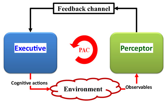 A cornerstone of Cognitive science’s theory is the PAC (Figure 3). The PAC is a cybernetics information processing circuit that draws inspiration from neuroscience and the human brain. The PAC aids living things in dynamically adjusting themselves to their environment (e.g., the environment may be a broadcast medium for the acoustic channels, fiber-optic communications, or diagnosing illnesses of a living organism) through goal-directed behaviors or language [8]. In these tasks, CDS perform similar cognitive functions to those of the human brain by processing the measured data from sensors [8]. The fundamental description of the CDS is presented in Figure 3. The function of the PAC as a global feedback loop is shown in this diagram. Both perceptors and the executive are members of the PAC. Additionally, the feedback channel links the perceptor to executive, and the environment completes the PAC.