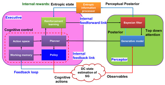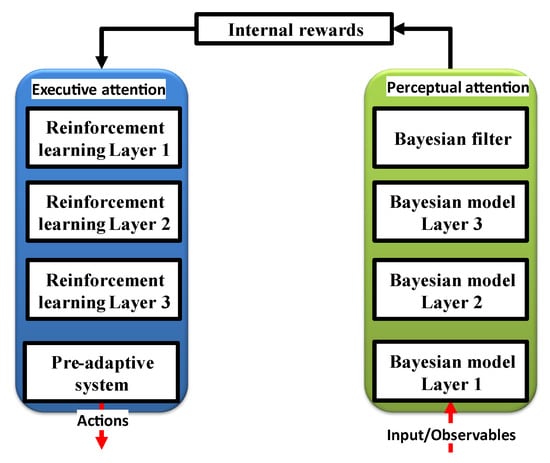 The perceptor and executive parts, respectively, can use the perceptual and executive attention systems. While the executive part is employed to preserve decision making with the least amount of disruption, the perceptor is tasked with responding to the excessing information from the environment. As seen in Figure 5, a Bayesian model (a statistical representation of an environment) is created before a Bayesian filter is used to estimate that environment. In conventional CDS [9], feature extraction occurs through Bayesian inference, and the executive uses reinforcement learning to reward perception flaws.