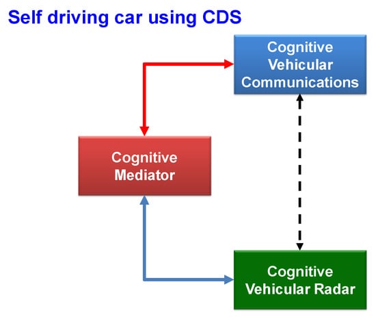 Applications of cognitive radar from the CDS were used in [9,21] to deliver the best target detection and intelligent signal processing. Dynamic spectrum management in wireless communication networks was one of the cognitive radio applications the CDS was used for in [8,21,22]. The theory and applications of the CDS for cognitive control were discussed in [9,10,21]. For risk management in physical systems, the CDS general concept was introduced in [23]. Applications of CDS for risk management have been highlighted for the selection of the vehicle radar transmit waveform [16], the mitigation of cyberattacks in smart grids [17], the detection of cyberattacks in smart grids [24], and the mitigation of vehicle-to-vehicle (V2V) jamming [25]. As the brain of a complicated network, CDS were also employed [26]. An example of a possible CDS block diagram for smart homes can be found in [27]. The authors of [28] discussed the use of CDS in cybersecurity-related applications. In addition to the conceptual block diagram and suggested simulation or experimental results, this review paper discusses the key CDS applications, such as cognitive radio, cognitive radar, self-driving cars, and smart grids (SG).