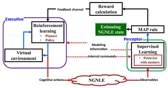 The planner, actions library, reinforcement learning, and policy are the executive’s most crucial subsystems. Utilizing the cost-to-go function, reinforcement learning’s goal is to maximize the internal rewards received from the perceptor [14]. After filtering by the policy, using the cost-to-go function’s most recent output, the planner should select a set of potential actions from the action library to implement in the environment. The objectives of the planning and reinforcement learning processes that the CDS should enhance are known as cognitive policy in conventional CDS [10].