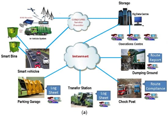 - Anagnostopoulos, T.; Zaslavsky, A.; Kolomvatsos, K.; Medvedev, A.; Amirian, P.; Morley, J.; Hadjieftymiades, S. Challenges and opportunities of waste management in IoT-enabled smart cities: A survey. IEEE Trans. Sustain. Comput. 2017, 2, 275–289. [Google Scholar] [CrossRef]