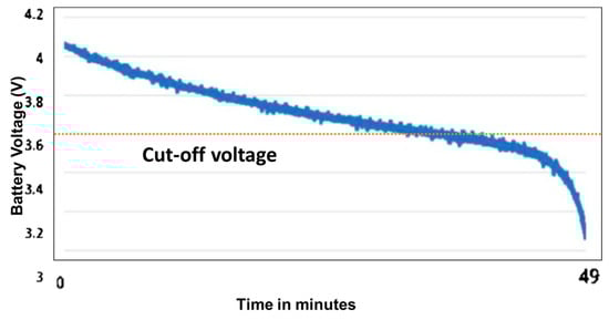 Battery discharge curve of iTex glove during continuous wireless transmission (Battery cut-off voltage set to 3.7 V in AXP192).