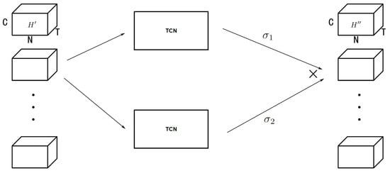 Using node embedding can decrease the number of learning parameters, thus lowering the difficulty. It also uses a threshold to control the sparsity of the adjacency matrix. These methods are able to learn the existences of edges, as well as the weight. Although a certain effect is made, an assumption is also made, which is that the graph structures of all samples are the same. The physical meaning of the differences between the samples is that the beginning time of the time series is different, which means that the above assumption can be interpreted as suggesting that the graph structure of multivariate time series is not time-variant. This goes against well-known facts. For example, peak or off-peak hours, day or night, sunny or rainy day, and workday or weekend and holidays are all time-variant external factors that affect the features in the datasets of traffic domain; thus, it is probably a better method for generating a dynamic adjacency matrix. Several methods that can generate the adjacency matrix by multiplying input data with a smaller matrix in the middle are brought up in the MTGNN and SLCNN [35], as shown in Table 1, where is one of the more commonly used activation functions, such as , , , or their combinations, and hyper-parameter is used as a threshold to control the sparsity of the matrix. Ws are learnable parameters, in the AGCRN, GWN, and MTGNN, and in the SLCNN and MTGNN, where is the preset dimension.