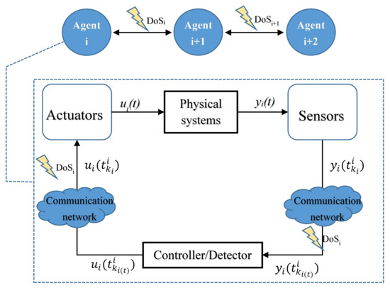 - Feng, Z.; Hu, G. Secure cooperative event-triggered control of linear multiagent systems under DoS attacks. IEEE Trans. Control. Technol. 2020, 28, 741–752. [Google Scholar] [CrossRef]