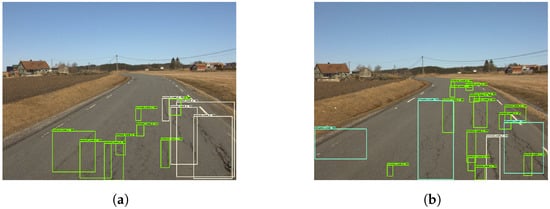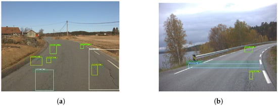 Approximately 145,000 vehicle-related images were found in the MS-COCO dataset. This is estimated in their work []. Oidv4 is estimated to have a little under 100,000 images of vehicle “boxes” in their dataset, read from figures on their website []. This is a rough estimation. There are several images in both datasets that contain roads without vehicles. It becomes evident that MS-COCO contains about 50% more road vehicles than Oidv4. This can have caused the pre-trained model to learn more road-related features from MS-COCO. It is important to point out that each image of a road can contain a varying amount of vehicles. Regardless, the estimated occurrences of vehicles in the two datasets indicate, to some extent, how well-represented roads are.