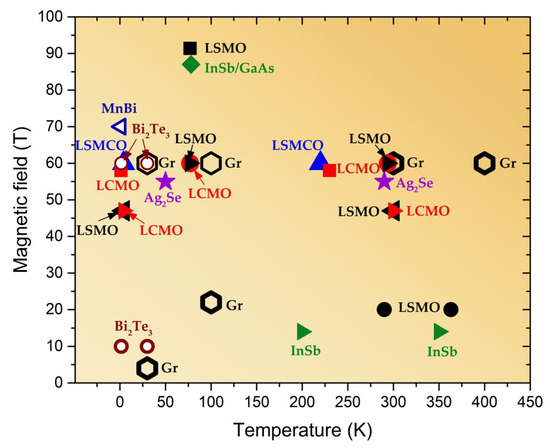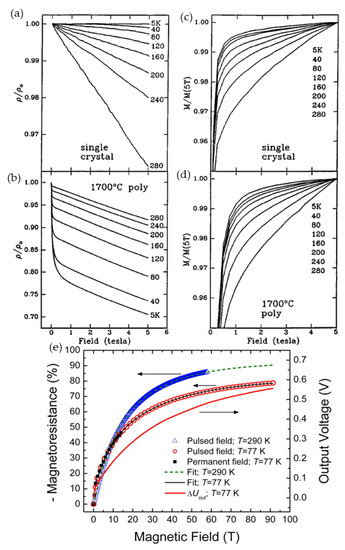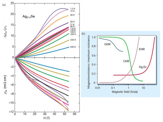 100. Xu, R.; Husmann, A.; Rosenbaum, T.F.; Saboungi, M.-L.; Enderby, J.E.; Littlewood, P.B. Large Magnetoresistance in Non-Magnetic Silver Chalcogenides. Nature 1997, 390, 57–60. [Google Scholar] [CrossRef]