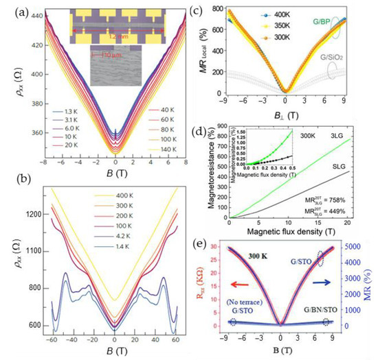 132. Gopinadhan, K.; Shin, Y.J.; Jalil, R.; Venkatesan, T.; Geim, A.K.; Neto, A.H.C.; Yang, H. Extremely Large Magnetoresistance in Few-Layer Graphene/Boron–Nitride Heterostructures. Nat. Commun. 2015, 6, 1–7. [Google Scholar] [CrossRef]